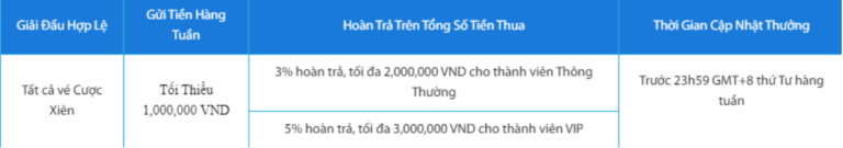 - Thành viên chỉ có thể nhận cược miễn phí một lần duy nhất/tuần.
