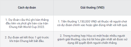 a) Cược ≥ 115 VND/ vé tại giải World Cup 2022 = 1 vé dự đoán