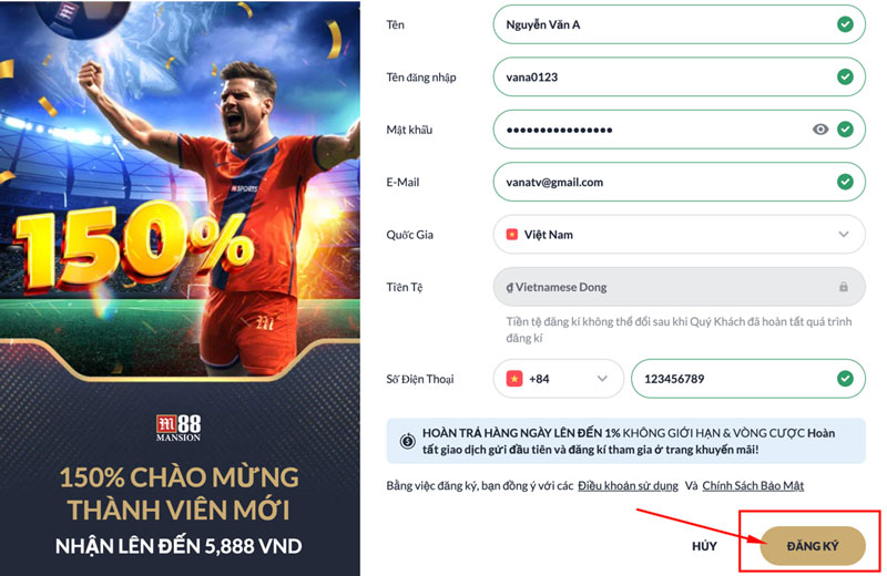 Sau khi điền đầy đủ thông tin mà các trang cá độ bóng đá online yêu cầu và bấm nút xác nhận (một số trang sẽ là nút đăng ký), bạn đã hoàn thành 90% quá trình tạo tài khoản.