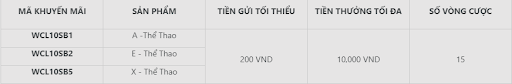 Để tham gia, thành viên cần thực hiện lệnh Gửi Tiền tối thiểu 200 VND hoặc hơn và chuyển quỹ A – E – X Thể Thao và điền mã khuyến mãi dưới đây: